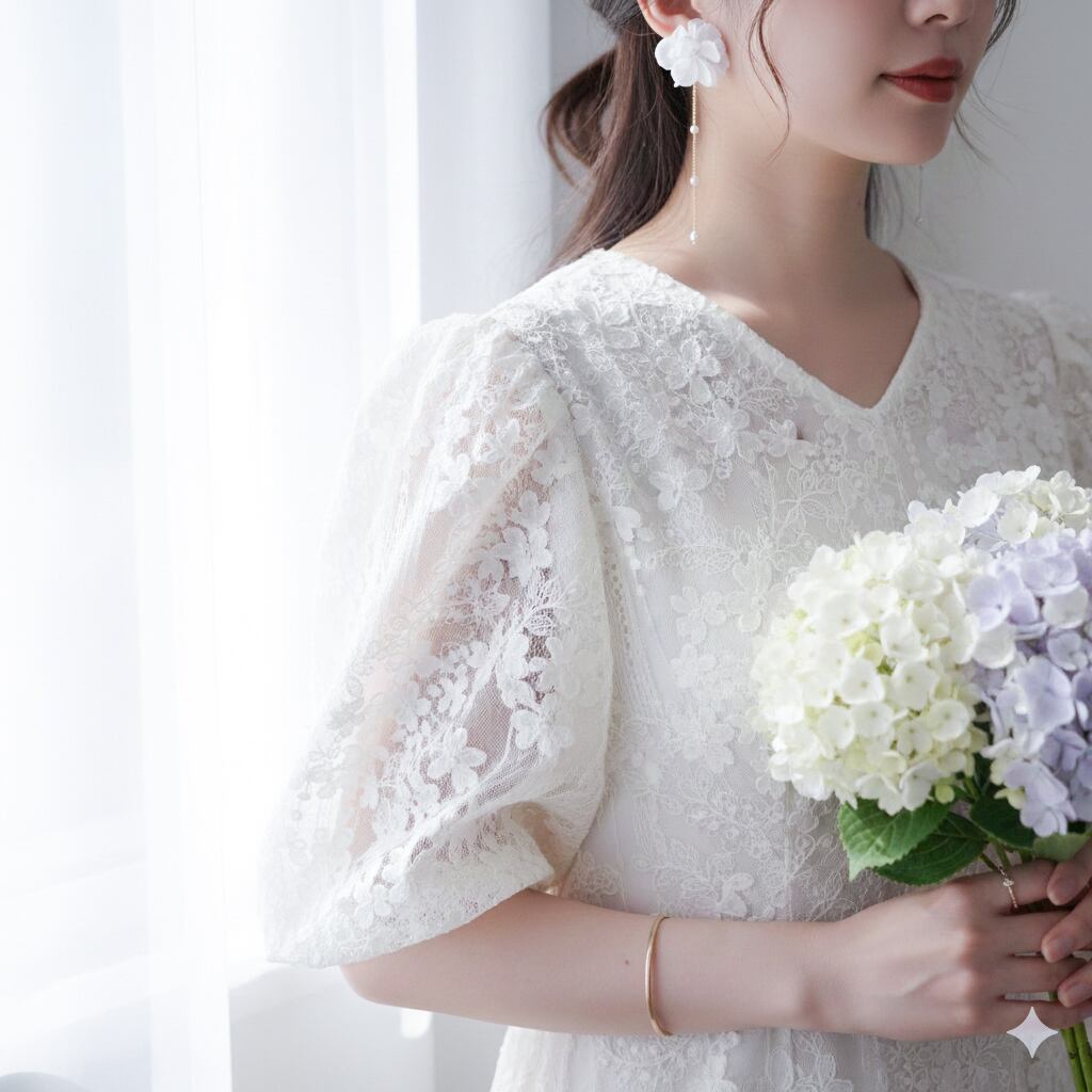 【検索用ワード】ウエディング ブライダル 花嫁 ウエディングアクセサリー イヤリング パール 花 フラワー 上品 華やか 写真映え ハンドメイド 紫陽花 あじさい Nooori.